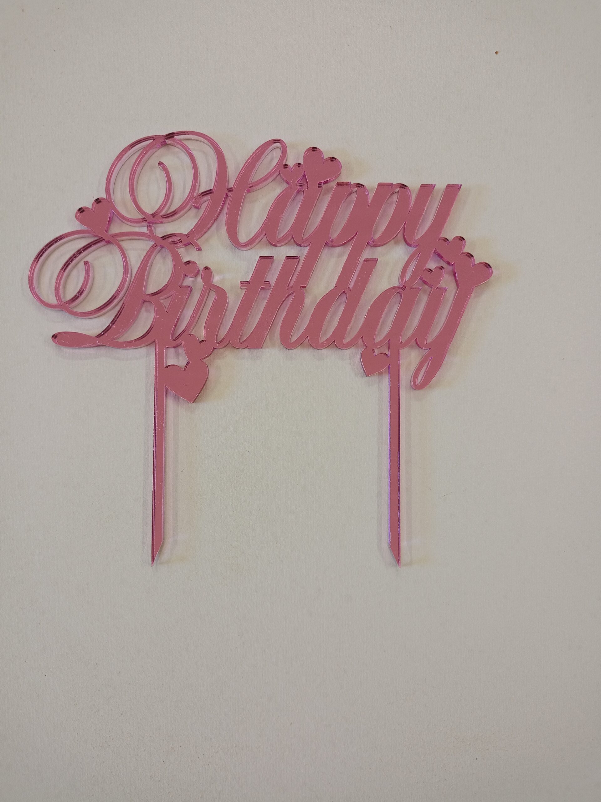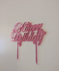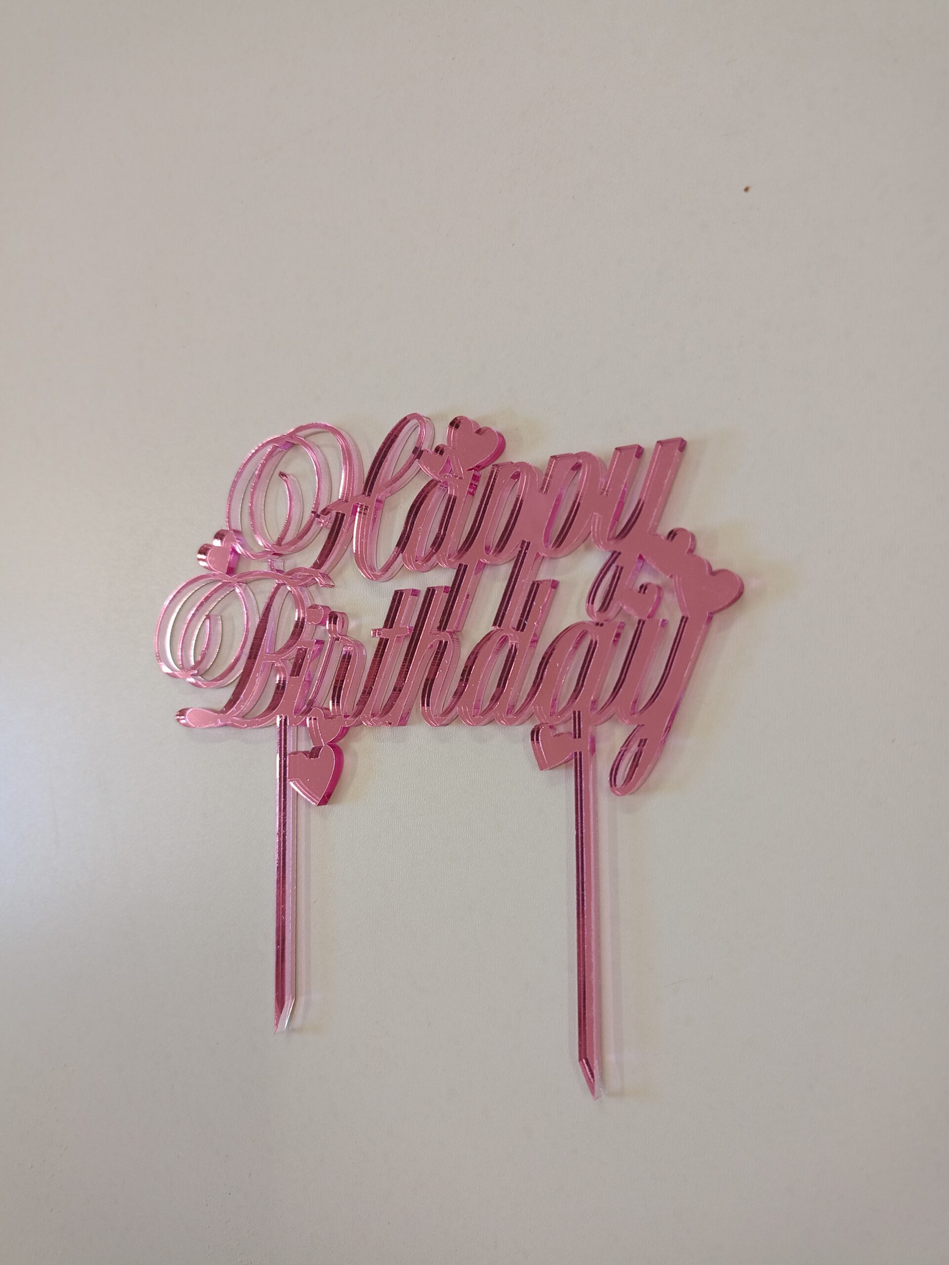 Cake Topper happy birthday plexiglass ροζ με διάσταση 12 cm x 13 cm