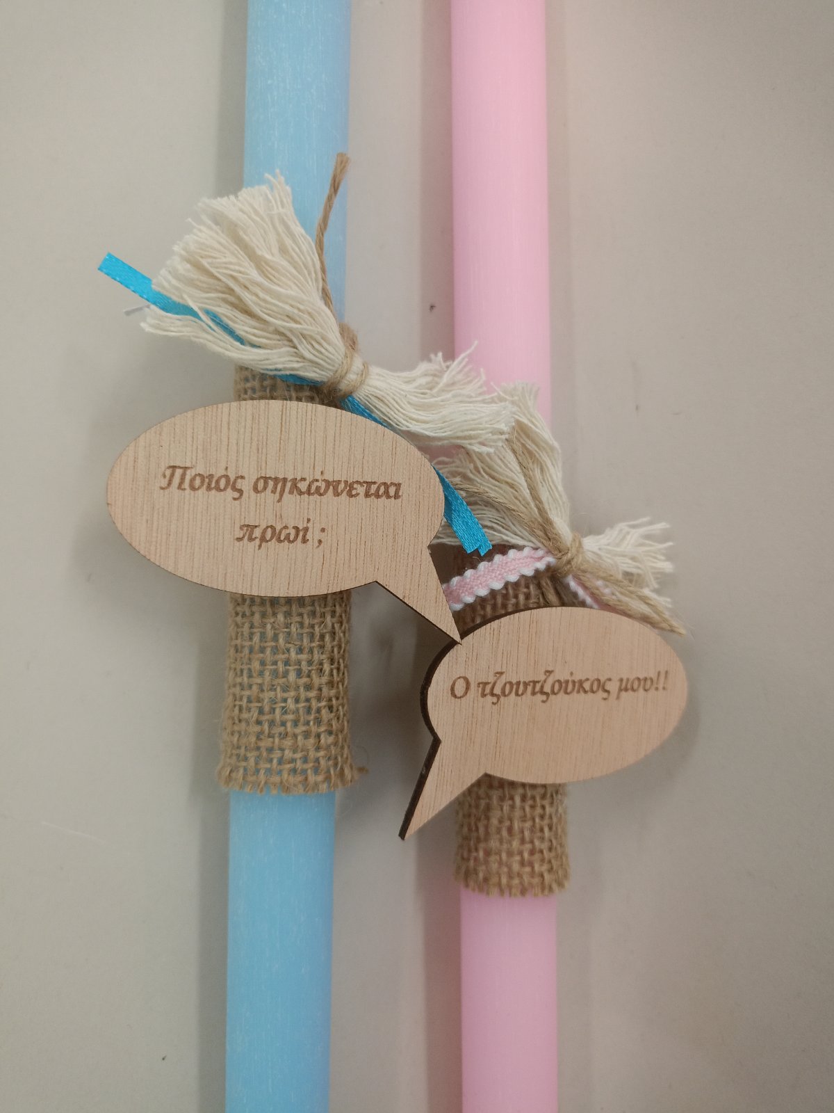 Λαμπάδα αρωματική ζευγάρι ρόζ και μπλέ με ξύλινο στοιχείο