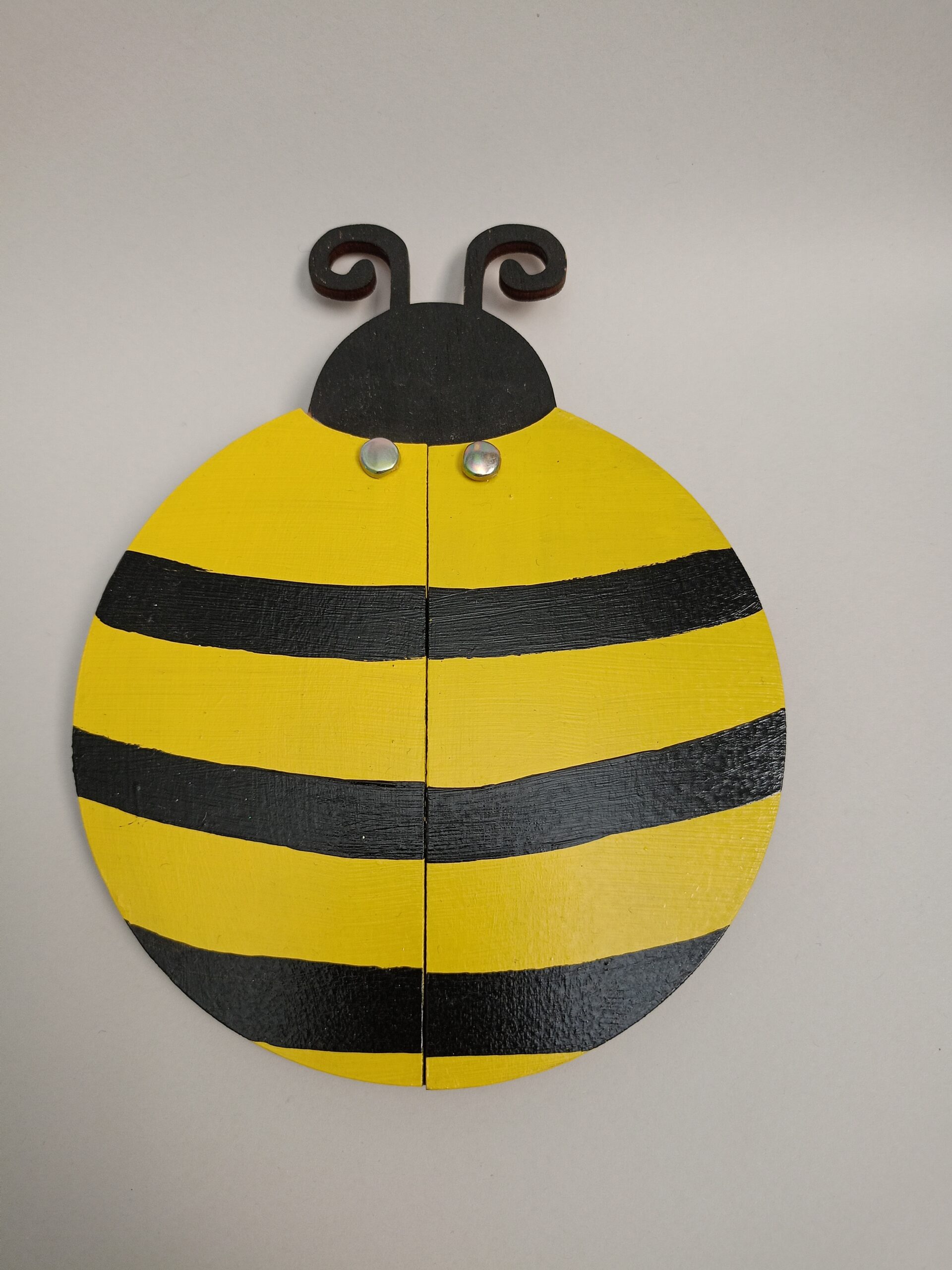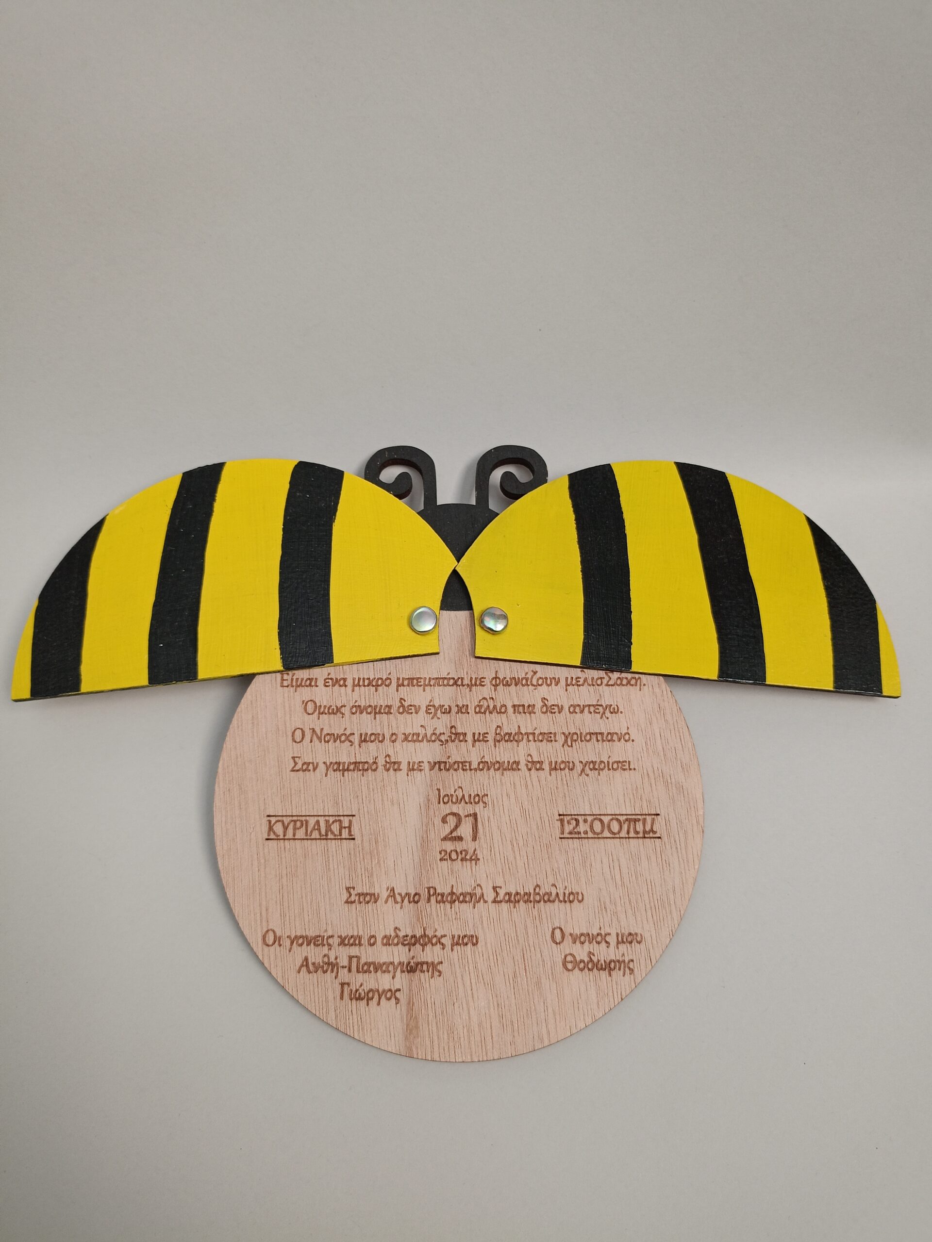 Ξύλινο προσκλητήριο βάπτισης με θέμα μελισσούλα ζωγραφιστό