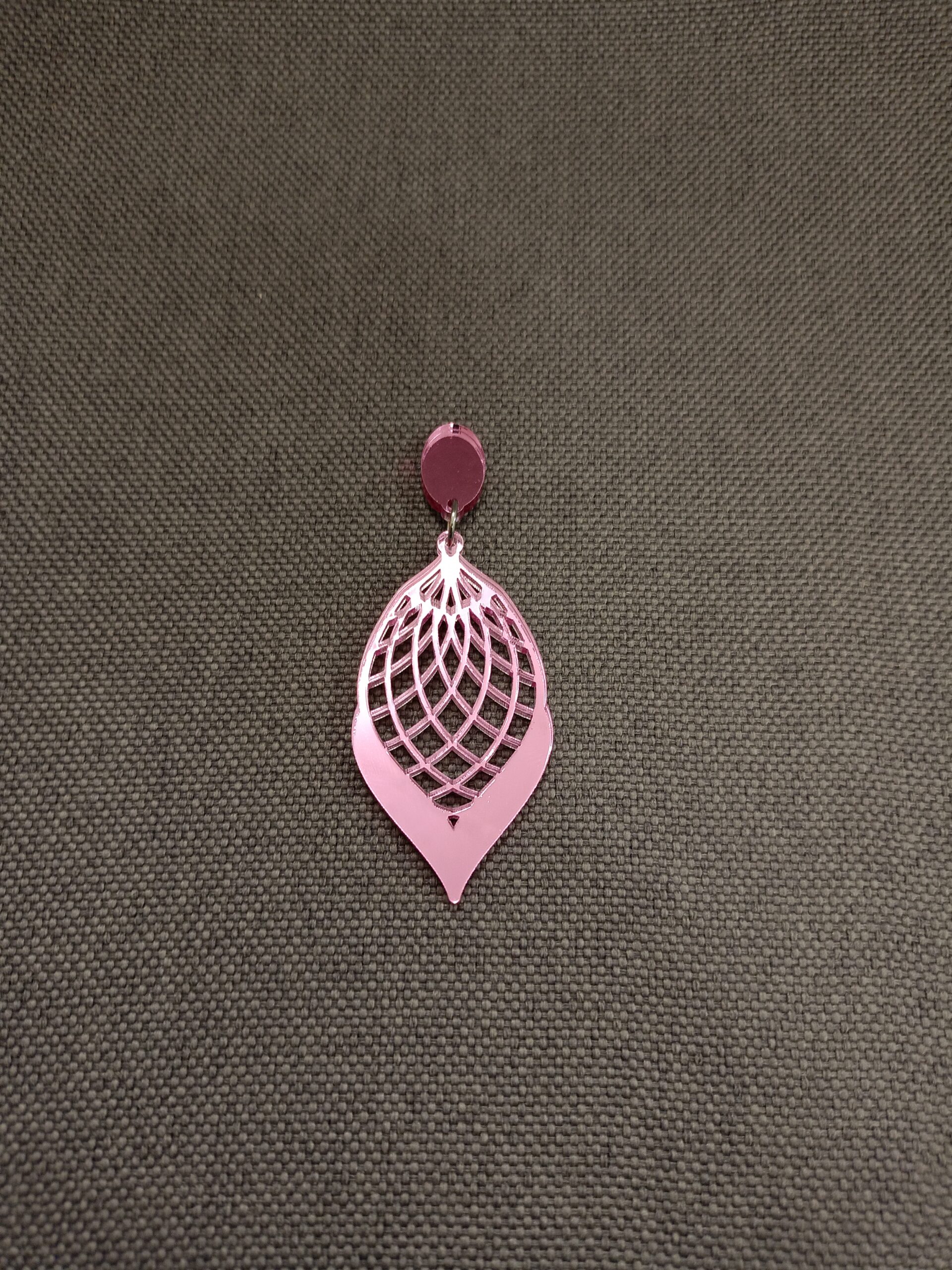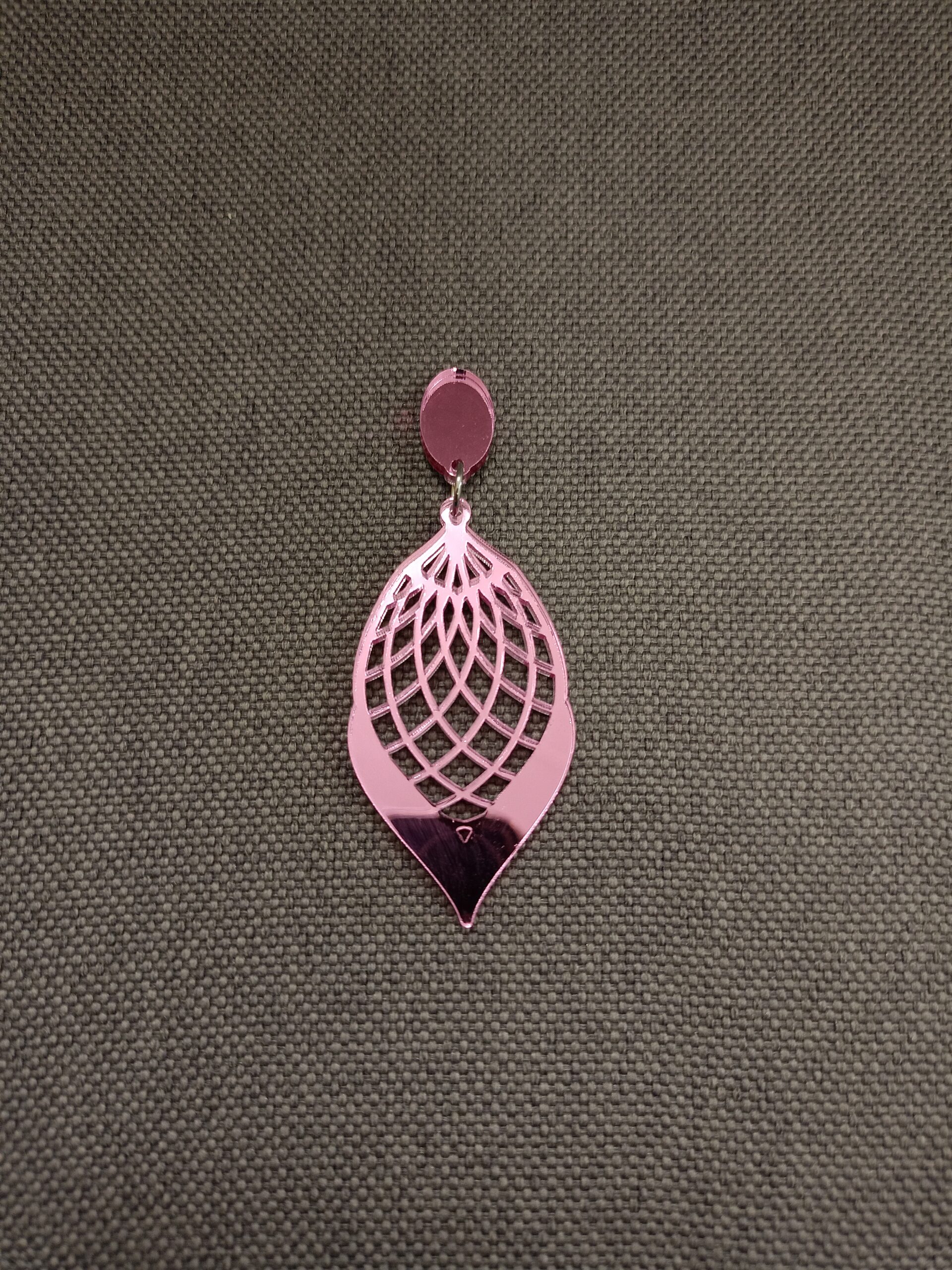 Σκουλαρίκι ζευγάρι ροζ plexiglass καθρέπτης διάσταση 8 cm