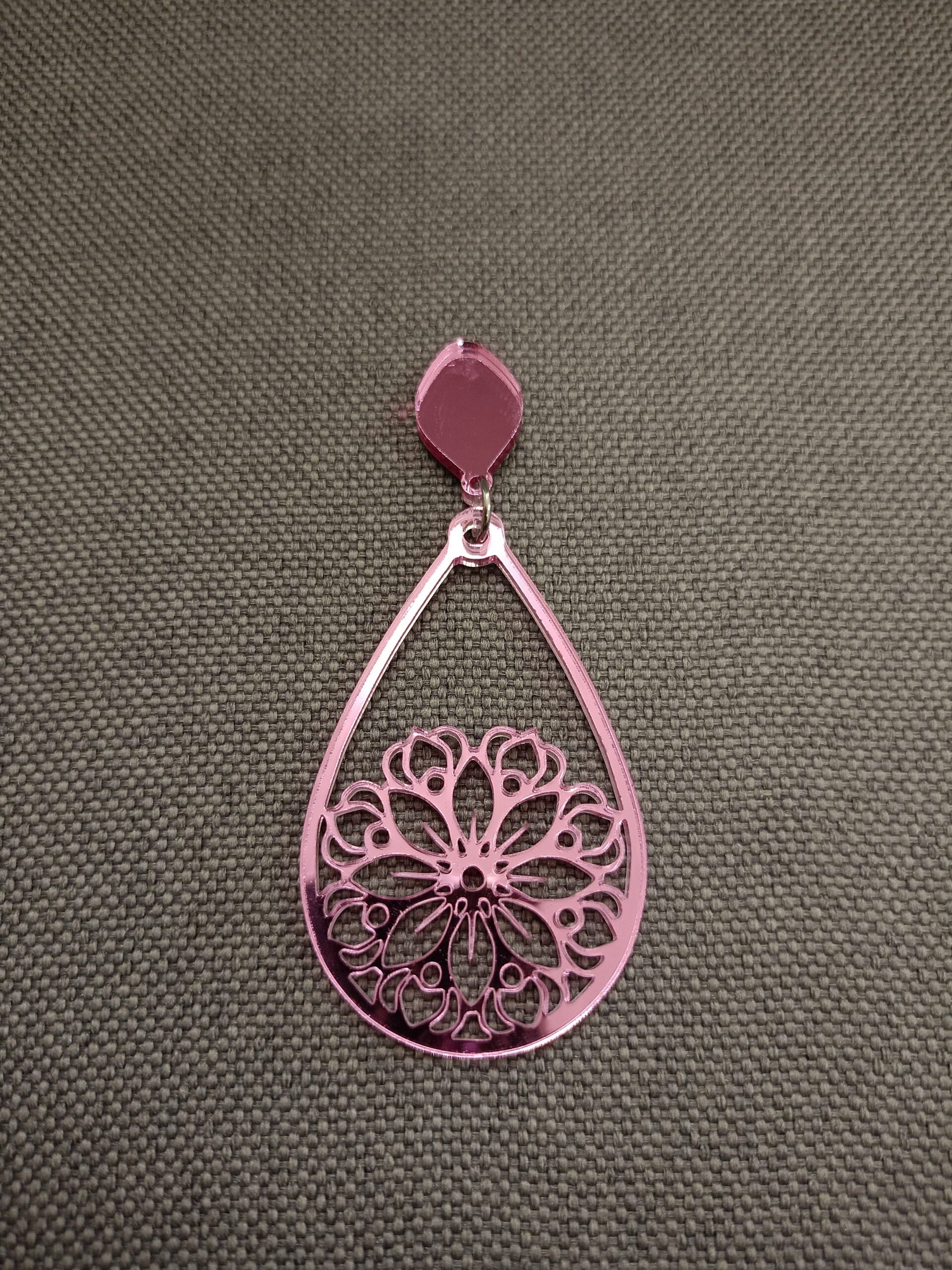Σκουλαρίκι ζευγάρι ροζ plexiglass καθρέπτης διάσταση 8 cm